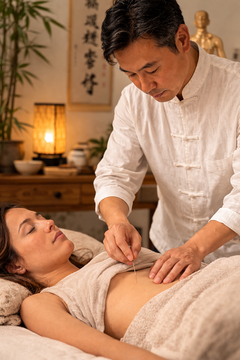 L'acupuncture pourra, après une études des pouls du patient, ainsi que de sa langue et un bilan sur les habitudes de vie du patient, remonter à l'origine des tensions et par les aiguilles ramener le corps du patient à l'équilibre sur différents plans énergétiques.